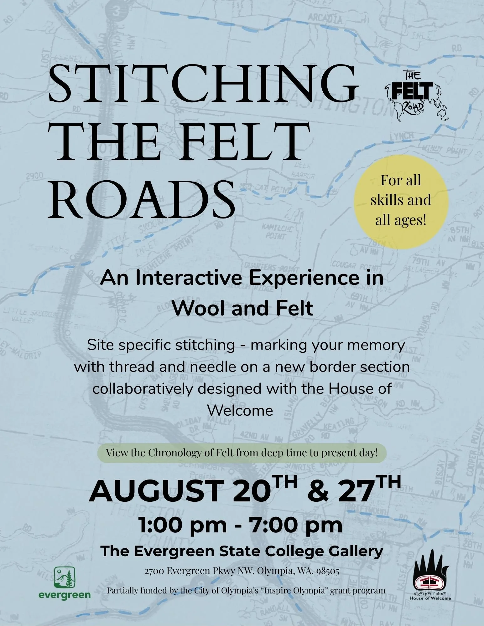 Join us tomorrow evening for our final installation of “Stitching the Felt Roads” at the Evergreen State College Gallery from 1pm - 7pm.